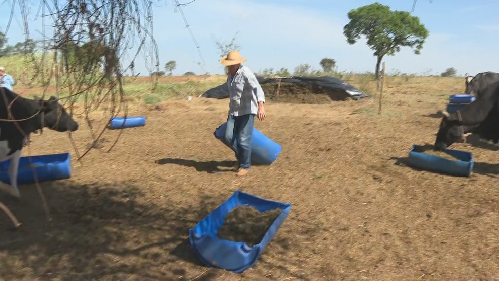 Produtores investem em estratégias para alimentar gado durante período de seca — Foto: TV TEM/Reprodução